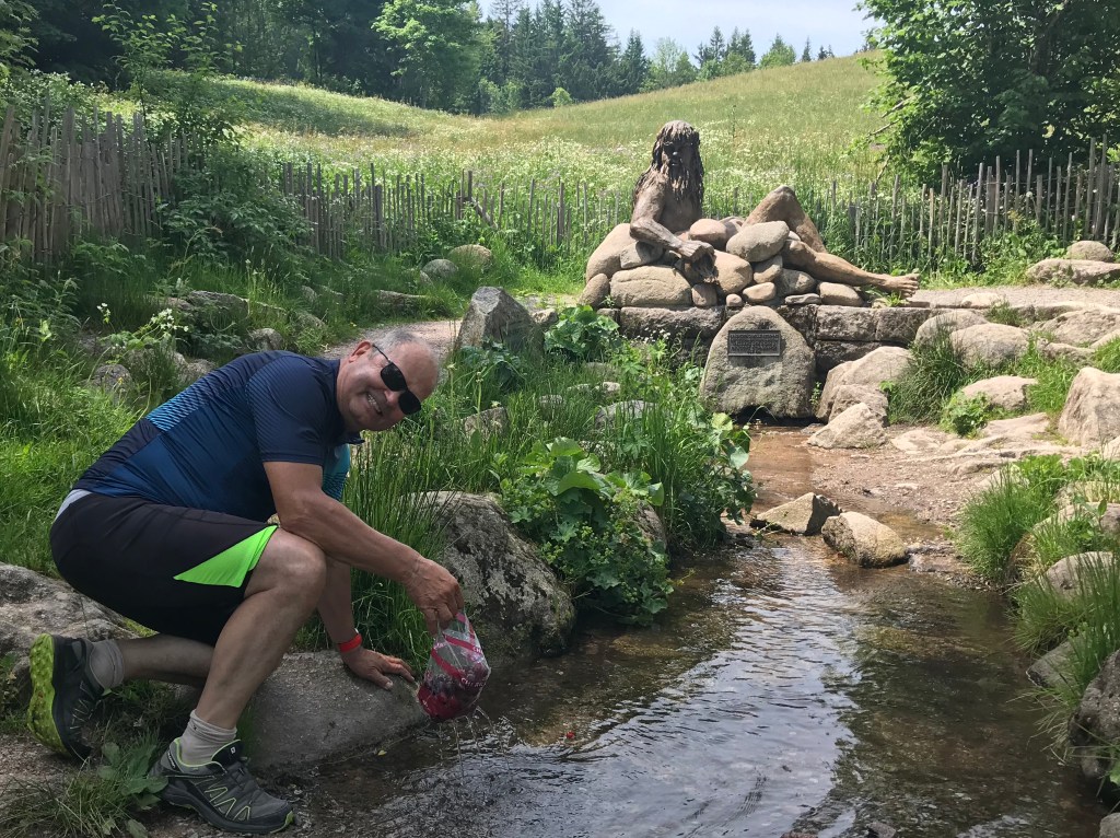 An der Breg entlang gibt es einen wunderschönen Radweg bis nach Furtwangen, von wo wir in das steilere Almtal zur Bregquelle hinauffahren konnten. Die Quelle ist schlicht aber schön eingefasst, und entspringt aus einer steilen Feuchtwiese, nur 150m unterhalb des Sattels, der auch die europäische Wasserscheide zum Rhein bildet.