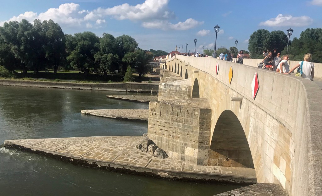 Die steinerne Brücke wurde 1146 fertiggestellt, und war über viele Jahrhunderte von Ulm bis Wien der einzige ganzjährig verlässliche Donauübergang. Wie bei einem weiträumigen Trichter hatten sich die Nord-Süd und Süd-Nord Ferntransporte in Regensburg konzentriert um dort den Fluss zu überqueren, dies hat Regensburg zu einer der reichsten Städte des Spätmittelalters gemacht.
