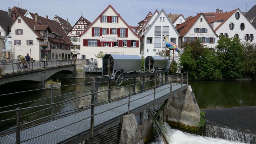 Bald durchquert man die Kreisstadt Ehingen mit wunderschöner Altstadt und einem großen Brunnen am Marktplatz und einem Bierwanderweg, den wir jedoch nicht genossen hatten, es lag ja noch eine 35 km Strecke bis Ulm vor uns.